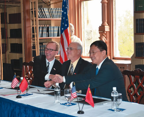 2011年11月4日,,,,,,,,CERNET国家网络中心主任吴建平教授在华盛顿乔治城大学与美国印第安纳大学副校长Brad Wheeler、美国Internet2 CEO Dave Lambert碰面,,,,,,,,配合庆祝中美学术网络高速互联相助的建设,,,,,,,,并代表中国教育和科研盘算机网CERNET网络中心与美方签署了相关相助协议。。。。。。这是中美政府第一次配合出资支持的专用于学术相助的网络高速直连项目。。。。。。