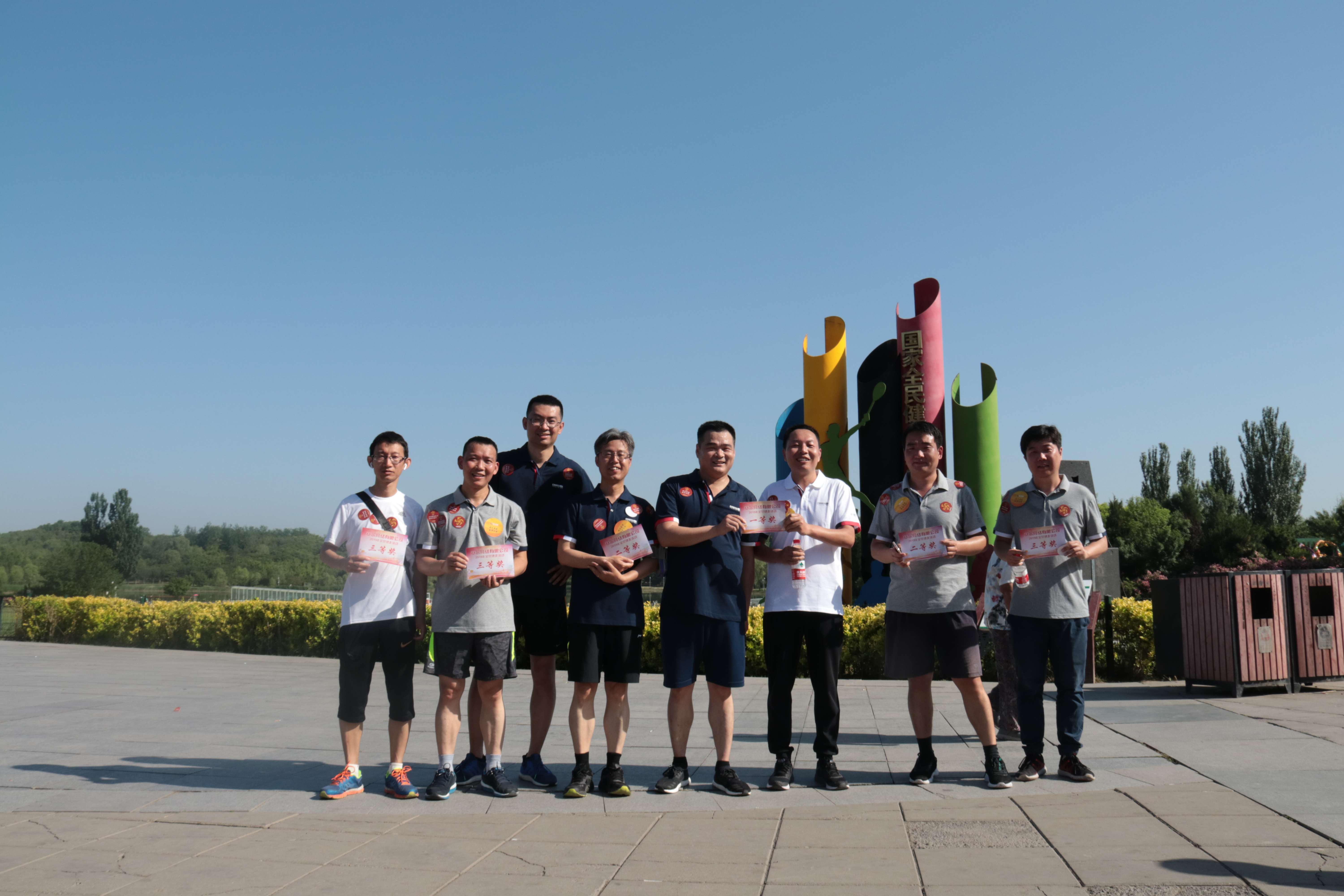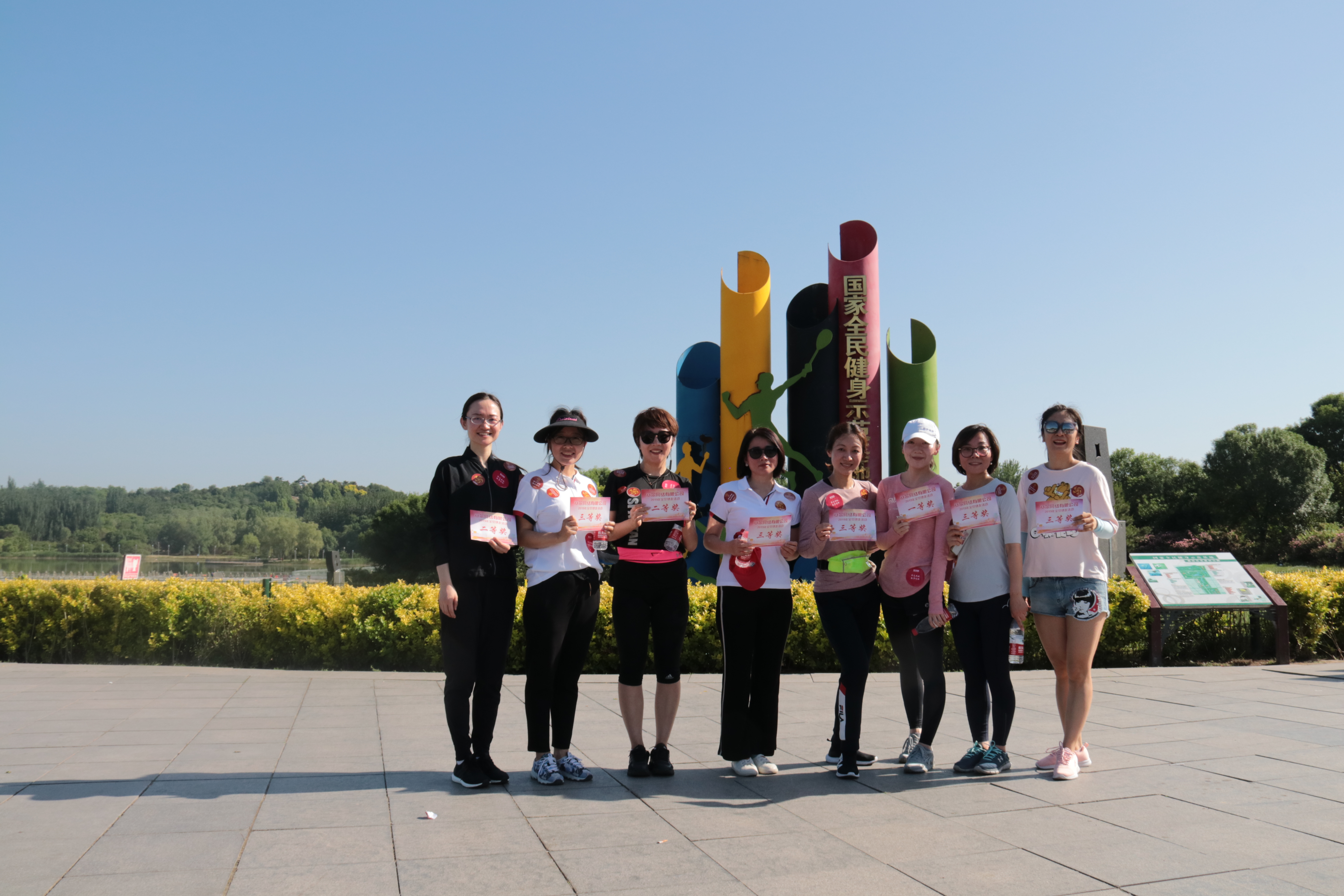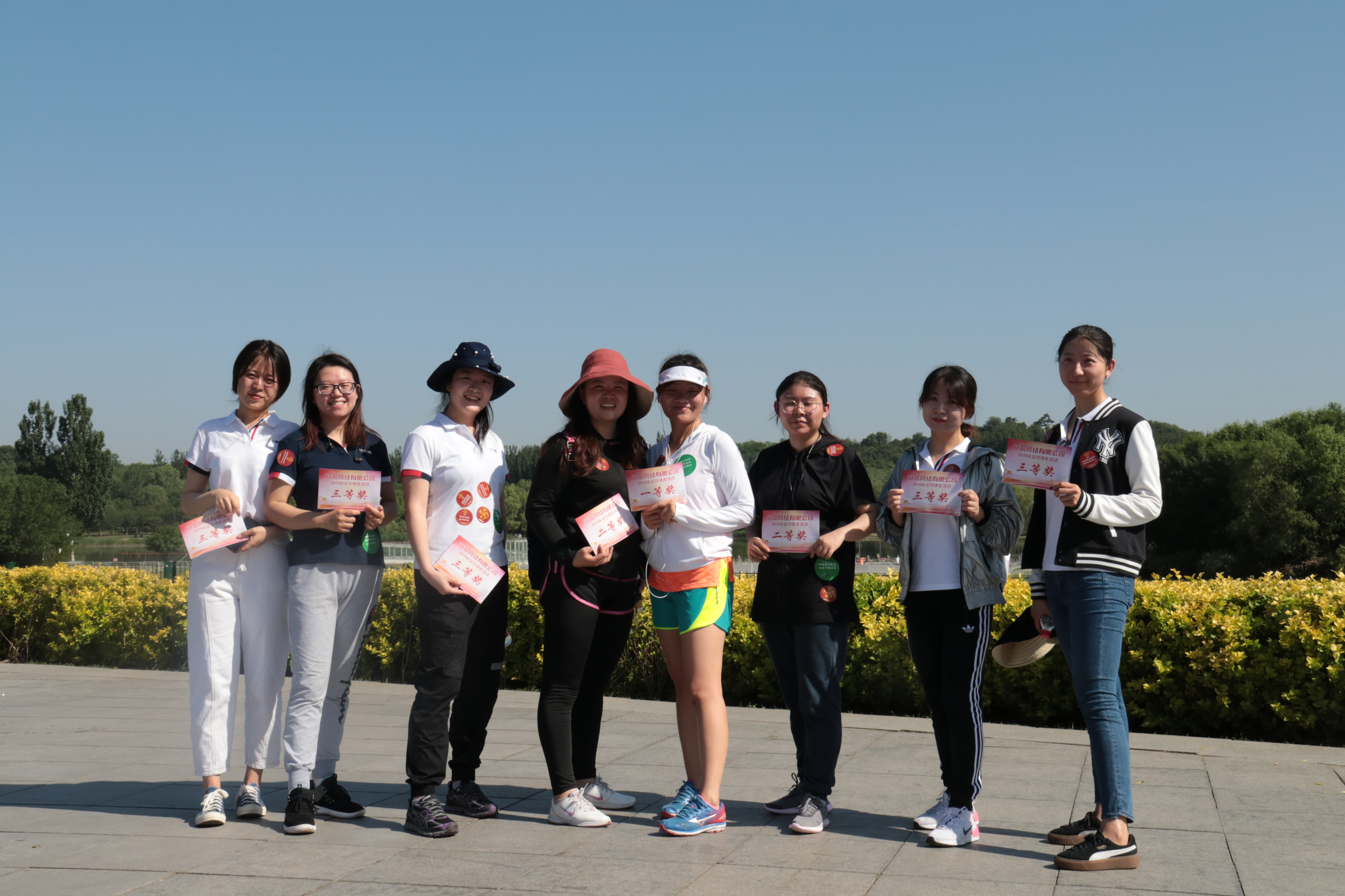 运动当天,,,,,北京总部选择了奥森公园5公里的赛程举行健走角逐,,,,,参赛者凭证年岁和性别分为青春(中年女子)、荣耀(中年男子)、飞扬(青年女子)和凌云(青年男子)四支步队。。。。。。 。。遵照历年赛制,,,,,参赛队员从起点出发、途径三处效劳站,,,,,划分集齐印有公司LOGO、焦点价值观、使命和愿景的四张标识贴后,,,,,方完成角逐全程。。。。。。 。。四组参赛步队每组设一等奖1名,,,,,二等奖2名,,,,,三等奖5名。。。。。。 。。