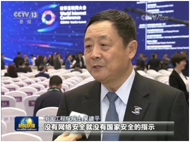把网络清静上升到国家层面为建设网络清静系统指明偏向—— 吴建平院士出席2019年天下互联网大会接受央视采访